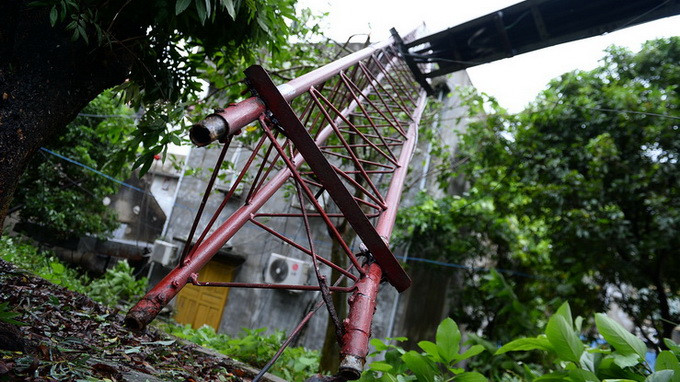 Tháp truyền hình tại Uông Bí bị đổ ngã, gãy gập làm nhiều đoạn
