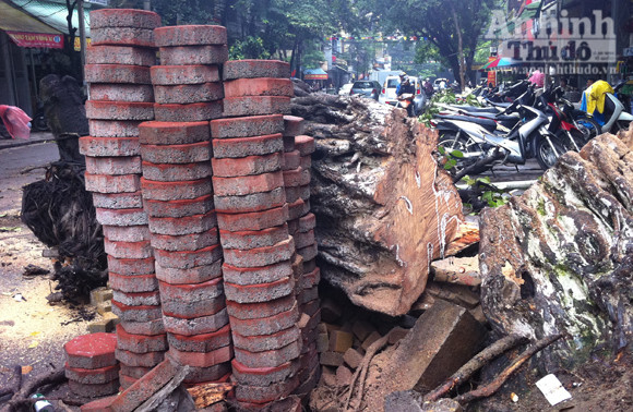 Nhận được tin báo, ngay sau đó công nhân của Công ty Công viên cây xanh Hà Nội đã có mặt, tiến hành cưa cây giải phóng hiện trường. Theo quan sát của phóng viên, rễ của cây đa cổ thụ là dạng dễ chùm, đã thối khá nhiều. Cộng với việc vỉa hè phố Đỗ Ngọc Du đang được lật lên lát lại đúng dịp Hà Nội có mưa nhiều ngày làm đất mềm ra…đã khiến cây bị bật gốc.