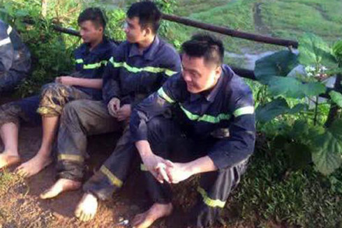 Các chiến sỹ Cảnh sát PCCC - Công an tỉnh Hòa Bình tạm nghỉ ngơi để thay ca cho đồng đội