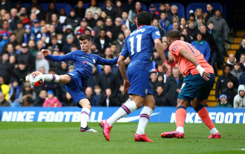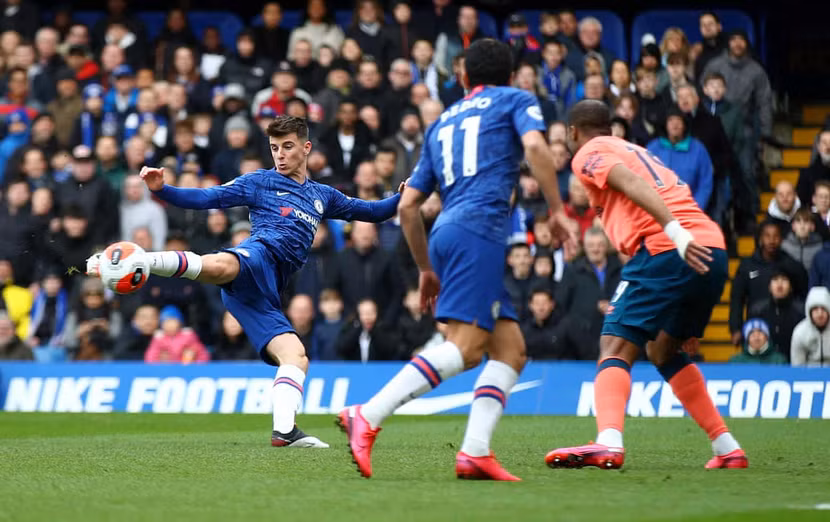 Trong 45 phút đầu tiên, Chelsea áp đảo hoàn toàn và Everton chỉ biết căng mình chống đỡ. Cả hiệp 1, đội khách chỉ tung ra được duy nhất một cú sút, và nó không đi trúng khung thành. Trong khi đó, đội quân của Frank Lampard kiểm soát bóng 59%, sút 6 trúng 5 và thành công 2 lần.
