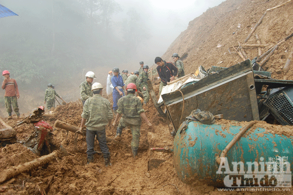 Tất cả nạn nhân trong vụ sập núi đều là người dân đi mót quặng ở khu vực mỏ của công ty cổ phần Thịnh Đạt. Mỏ quặng được cấp phép khai thác từ năm 2010, thời hạn 7 năm. Tuy nhiên, ông Ly cho biết, khu vực người dân khai thác quặng nằm ngoài phạm vi quản lý của mỏ.Cả ngày 8-9, dù trời mưa tầm tã nhưng hàng chục người dân vẫn ngóng chờ tung tích của các nạn nhân còn nằm trong đống đất lở. Hai nạn nhân đã được tìm thấy trong ngày, nhưng vẫn còn 2 người nữa nằm trong hàng nghìn m3 đất đá. Trong khi, công tác tìm kiếm nhiều lúc tạm thời phải gián đoạn vì thời tiết bất lợi, địa hình vẫn tiềm ẩn nguy cơ sạt lở. Trong ngày 9-9, công tác tiềm kiếm sẽ được tiếp tục.