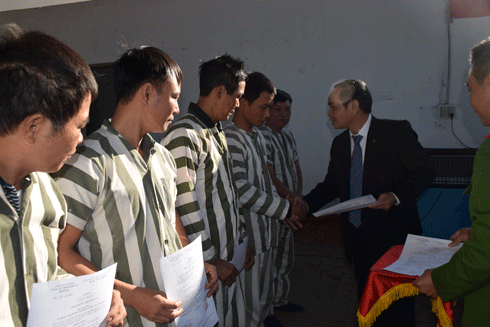 Đại diện Tòa án nhân dân TP Hà Nội trao quyết định đặc xá cho các phạm nhân