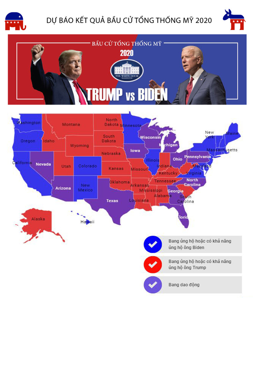 Trước “giờ G”, các kết quả thăm dò đều cho thấy một chiều hướng chung là thế trận đang nghiêng về cựu Phó Tổng thống Joe Biden và kịch bản ông Donald Trump có thể phải rời khỏi Nhà Trắng. Thế nhưng, sẽ rất liều lĩnh khi dự đoán thắng - thua trong “trận chung kết” diễn ra ngày 3-11 bởi ông Donald Trump có thể “lật ngược thế cờ” bất cứ lúc nào, tương tự như những gì ông đã làm được cách đây 4 năm. Lợi ích kinh tế sát sườn hay ưu tiên chăm sóc y tế đang trở nên đặc biệt quan trọng giữa lúc dịch bệnh hoành hành, sự lựa chọn của cử tri Mỹ sẽ quyết định ai là Tổng thống tiếp theo của họ.