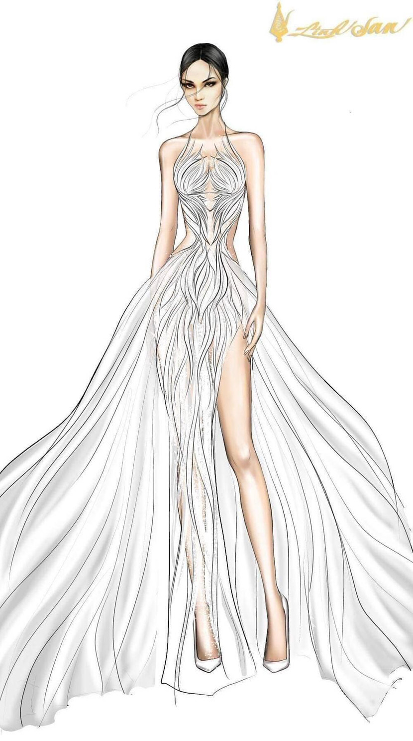 Cũng theo nhà thiết kế Linh San, vì cuộc thi có tên gọi “Hoa hậu Hòa bình Quốc tế” nên các mẫu thiết kế được lấy cảm hứng từ hình ảnh chim bồ câu với ý nghĩa cánh chim hòa bình và thông điệp chân thành đến từ Việt Nam sẽ giúp đại diện nhan sắc Việt tỏa sáng trên đất Thái Lan cũng như lan tỏa tình hữu nghị khắp năm châu. Hiện tại các mẫu thiết kế này đã hoàn thiện và theo chân Ngọc Thảo đến Thái Lan và mỗi mẫu thiết kế đều có ý nghĩa đặc biệt. Theo đó, nhà thiết kế Linh San đã chọn lựa các tông màu trắng, vàng, xanh để phác thảo nên những mẫu thiết kế trên. Một đoạn clip ngắn hé lộ về một chiếc váy dạ hội được lấy ý tưởng từ chim bồ câu trắng cũng được đông đảo khán giả ủng hộ.