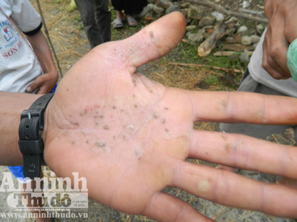 Bàn tay của một người dân bị nổi sộp do nhiễm độc