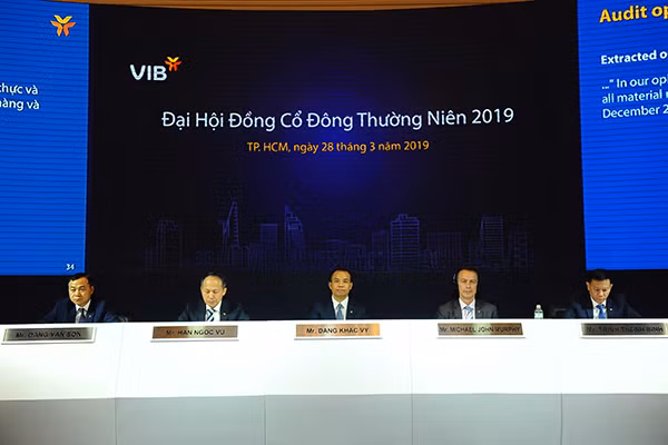Ngày 28/3 tại TP.HCM, Ngân hàng VIB đã tổ chức thành công Đại hội đồng cổ đông (ĐHĐCĐ) thường niên năm 2019. Hội nghị đã thông qua tất cả các báo cáo và đề xuất của Hội đồng quản trị (HĐQT), Ban kiểm soát (BKS), đồng thời thông qua danh sách các thành viên HĐQT và BKS nhiệm kỳ mới.