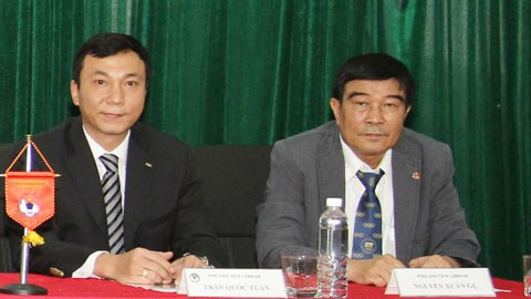 Ông Nguyễn Xuân Gụ (phải) xin từ chức và rút tranh cử Phó Chủ tịch, trong khi ông Trần Quốc Tuấn cũng vướng kiện cáo, nguy cơ không được ra tranh cử Chủ tịch VFF khóa tới