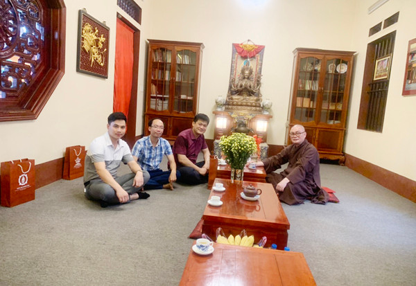 Thượng tá Nguyễn Thanh Bình, Phó trưởng CAH Mỹ Đức thay mặt Ban chỉ huy CAH thăm hỏi chúc mừng Thượng tọa Thích Minh Hiền nhân Lễ Phật đản, Phật lịch 2564