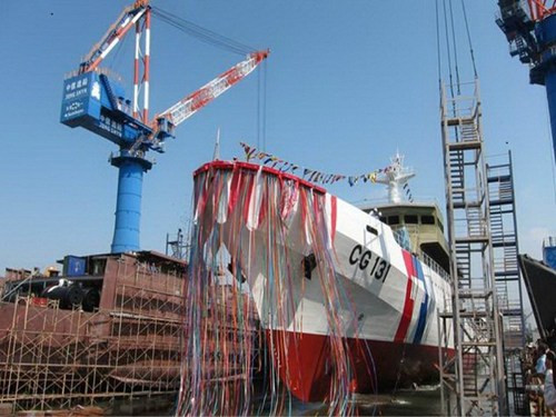 Tàu tuần tra “Miêu Lật”, số hiệu CG131 trong buổi lễ hạ thủy hôm 4-11