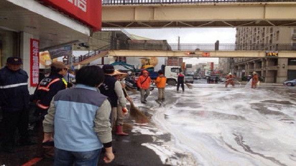 Cực cảnh sát cứu hỏa thành phố Tân Trúc cho biết, sự cố này xảy ra vào khoảng 09h sáng. Đường ống dẫn dầu quân sự bị vỡ, dầu tràn ra đường khiến một số xe máy đã bị trơn trượt ngã, làm chín người bị thương phải đi cấp cứu ở bệnh viện.