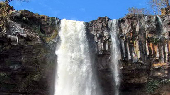Những người dân sống nơi phố núi Pleiku - Gia Lai không ai không biết đến thác Phú Cường. Thác nằm trong khu vực mỏ đá, thuộc địa phận xã Dun, cách thị trấn Chư Sê khoảng 3km và cách TP Pleiku tròn 45km. Những năm trước đây không nhiều du khách đến được với ngọn thác này bởi đường sá gập ghềnh khó khăn, lối xuống chân thác khuyến cáo “không dành cho người yếu tim” vì chỉ được dựng tạm bợ bằng những bậc đá nhấp nhô, cùng tay vịn gỗ ọp ẹp. Nhưng giờ mọi thứ đã thay đổi, con đường nối từ Quốc lộ 25 vào thác ngày nào còn bụi đỏ giờ trải nhựa xe chạy êm ru, hệ thống cầu thang dẫn xuống thác cũng đã được làm mới bằng sắt vững chãi. Mới trông thì cái cầu thang bằng sắt kia, có vẻ hơi cứng và “vô duyên” trước dòng thác mềm mại uốn lượn, cùng phong cảnh thiên nhiên hùng vĩ, nhưng thôi cũng tạm bỏ qua, tất cả vì sự an toàn của du khách.