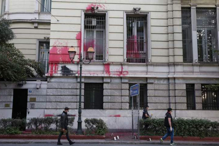 Bộ Ngoại giao Hy Lạp lên án vụ tấn công bằng sơn và tuyên bố rằng chính quyền nước này đang truy tìm các thủ phạm.