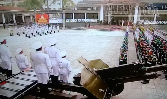 12 giờ ngày 11-10, lễ treo cờ rủ được trang trọng thực hiện tại Quảng trường Ba Đình. Cả nước đã để tang Đại tướng Võ Nguyên Giáp được 8 ngày!