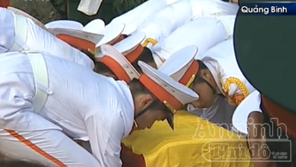 Đến 17 giờ ngày 13-10, Đại tướng chính thức an nghỉ vĩnh hằng ở Vũng Chùa, xã Quảng Đông, huyện Quảng Trạch, tỉnh Quảng Bình. Vậy là suốt 10 ngày, đồng bào, chiến sĩ cả nước và bạn bè quốc tế đã bày tỏ tình cảm vô bờ bến trước sự ra đi của Đại tướng huyền thoại- người Anh Cả của Quân đội ta.