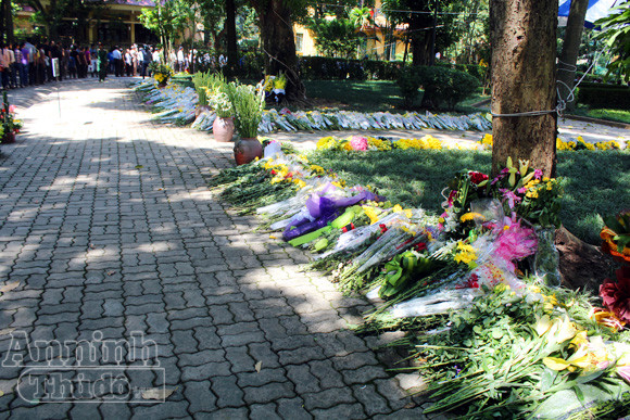 Những bó hoa tươi người dân gửi đến, phủ ngập sân vườn nhà Đại tướng