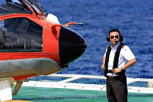 Đại úy Nguyễn Thành Trung cũng là phi công lái chính trong các chuyến bay vận chuyển, thăm dò, khảo sát trên biển của Tập đoàn Dầu khí Việt Nam.