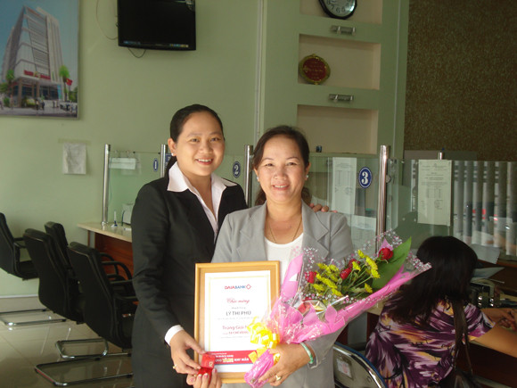 Sau 28 ngày diễn ra chương trình khuyến mãi “Tri ân khách hàng - Trúng vàng may mắn” (tính đến hết ngày giao dịch 24/9/2011) đã có 200 khách hàng trúng thưởng, trong đó giải Nhất đầu tiên (18 chỉ vàng SJC) đã được trao cho khách hàng Lý Thị Phú, ngụ tại thị xã Long Khánh, tỉnh Đồng Nai (ảnh). Hiện nay, chương trình vẫn còn 67 thẻ cào trúng thưởng, trong đó có 2 giải Nhất, 3 giải Ba và nhiều giải thưởng vàng khác chưa có chủ nhân.