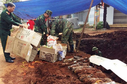 Nhận được tin báo, ngày 3-11, Bộ chỉ huy quân sự tỉnh Đắk Lắk đã cử lực lượng công binh xuống hiện trường tiến hành kiểm tra, rà soát và xử lý bom mìn. Phải mất 5 ngày toàn bộ số đầu đạn trên mới được lực lượng công binh đưa về nơi an toàn chờ tiêu hủy.