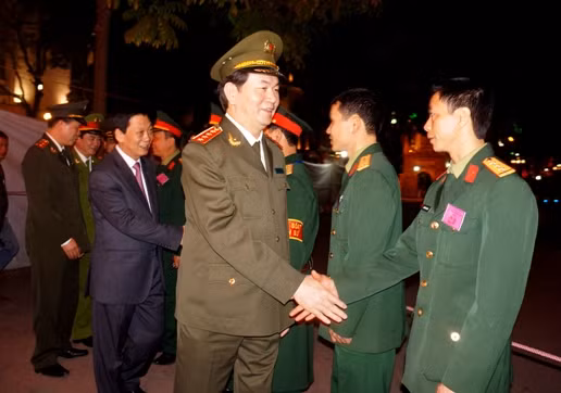 Cùng đi với đồng chí Bộ trưởng tối 30-1, có các đại diện lãnh đạo một số Tổng cục thuộc Bộ Công an, đồng chí trợ lý Bộ trưởng. Tiếp đoàn công tác của Bộ Công an có đồng chí Nguyễn Thế Thảo, Uỷ viên Trung ương Đảng, Chủ tịch UBND TP Hà Nội, Vũ Hồng Khanh, Ủy viên Ban Thường vụ Thành ủy Hà Nội, Phó Chủ tịch UBND TP; Thiếu tướng Nguyễn Đức Chung, Ủy viên Ban Thường vụ Thành ủy, Giám đốc CATP Hà Nội; cùng đại diện lãnh đạo một số phòng nghiệp vụ CATP.