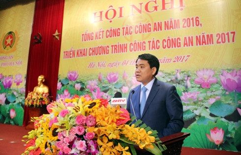 Thay mặt lãnh đạo Thành ủy, HĐND, UBND thành phố Hà Nội, đồng chí Nguyễn Đức Chung nhiệt liệt biểu dương những thành tích, chiến công của CATP Hà Nội đạt được trong năm 2016.