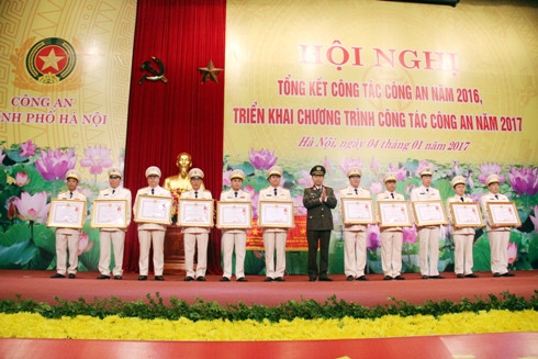 Điểm lại những nét nổi bật trong các mặt công tác Công an năm 2016 của CATP Hà Nội, Thượng tướng Tô Lâm đánh giá những kết quả đó đã được Đảng, Nhà nước và nhân dân ghi nhận, biểu dương và tặng thưởng nhiều phần thưởng cao quý. Đặc biệt, năm 2016 là năm thứ 11 liên tiếp CATP Hà Nội được Chính phủ tặng cờ Đơn vị dẫn đầu phong trào thi đua “Vì An ninh Tổ quốc”.