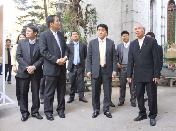 Linh mục Nguyễn Ngọc Châu hướng dẫn Giám đốc CATP cùng đoàn công tác đi