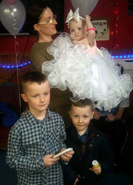 Cô bé bên mẹ và hai anh trai trong ngày đặc biệt.