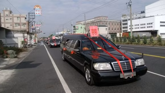 Cô dâu được rước về nhà trai trong chiếc xe tang