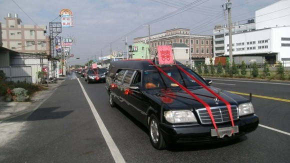 Sáng ngày mùng 3 tết, dẫn đầu đoàn rước dâu là một chiếc xe Jeep, theo sau đó là 6 chiếc xe tang lễ đến nhà gái đón dâu. Sau các nghi lễ cưới hỏi, cô dâu và chú rể bước lên xe tang về nhà trai. Đội xe tang được trang trí chữ Song Hỷ đã thu hút sự chú ý của rất nhiều người qua lại trên quãng đường dài 8 km. Hầu Minh Tu và cô dâu Đới Vân Hiên coi đây là một kỷ niệm khó quên trong đời họ vì đã đi ngược lại hoàn toàn với những quan niệm trước đây của người Trung Quốc là phải chọn ngày lành tháng tốt thì mới có được hạnh phúc dài lâu. Theo cô dâu và chú rể cho biết thì với họ, hạnh phúc và tình yêu là do đôi bên tự bồi đắp và nỗ lực tạo nên chứ hạnh phúc trong hôn nhân không thể dễ dàng tan vỡ chỉ vì họ chọn những thứ được cho là xui xẻo theo mê tín dị đoan.