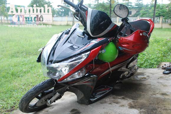 Xe máy bị nát đầu tại Công an huyện Bình Sơn.