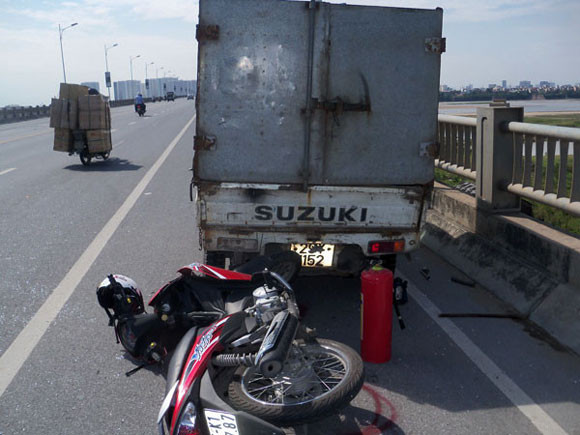 Vụ tai nạn xảy ra vào khoảng 12h trưa nay (12-11), trên cầu Vĩnh Tuy.