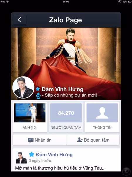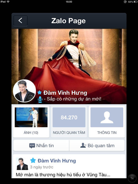 "Ngôi nhà mới" của ca sĩ Đàm Vĩnh Hưng trên Zalo
