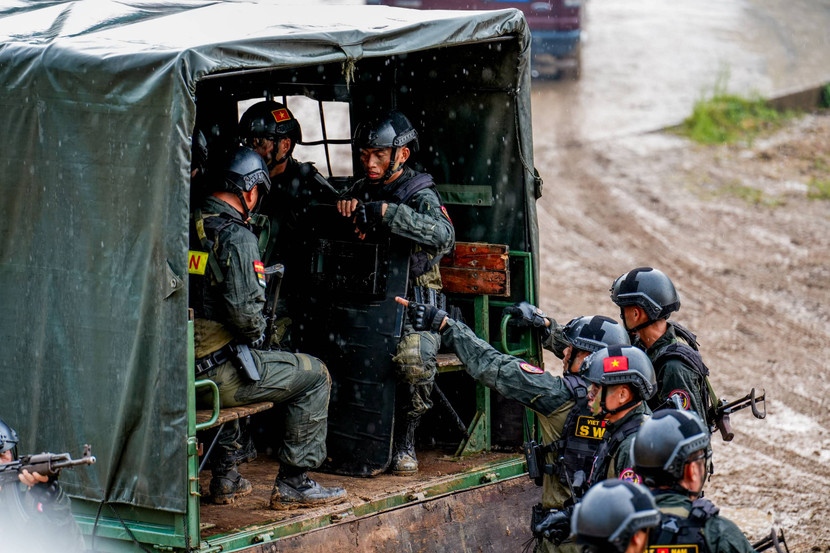 Cơn mưa xối xả bất ngờ ập xuống thao trường, biến đất thành bùn lầy, áo giáp nặng trĩu, từng bước chân như muốn ghì chặt xuống mặt đất. Thế nhưng, tinh thần thép của người chiến sĩ vẫn kiên cường, biến khó khăn thành động lực tiến lên. Trong vai trò xạ thủ, Long Hạt Nhài thừa nhận sự căng thẳng dồn nén: “Tôi hồi hộp và lo lắng vì nếu không thực hiện bắn chính xác mục tiêu thì chính tôi sẽ là người gây nguy hiểm cho đồng đội”. Nhưng với bản lĩnh và sự tập trung tuyệt đối, anh đã bóp cò thành công, mở đường cho các mũi tiến công áp sát. Khi hiệu lệnh “Tấn công!” vang lên, khung cảnh lập tức vỡ òa với loạt súng nổ chát chúa, khói lửa mịt mù, hành động dồn dập như một bộ phim điện ảnh sống động ngoài đời thực.