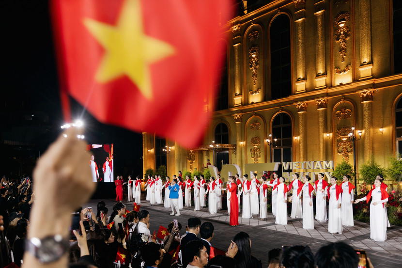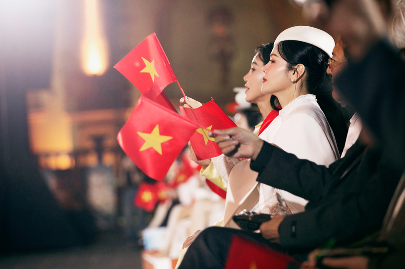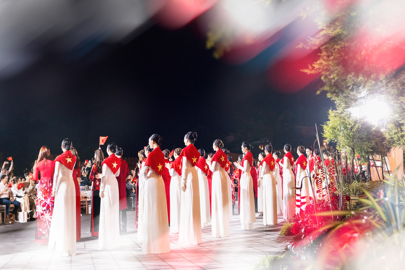 Phần biểu diễn còn có sự tham gia của thí sinh Miss Grand Vietnam 2025 cùng nhiều hoa - á hậu. Giây phút các người đẹp xuất hiện với tà áo dài truyền thống, hòa giọng trong ca khúc viết về lòng yêu nước, niềm tự hào dân tộc đã tạo nên khoảnh khắc vô cùng ý nghĩa, xúc động, trở thành điểm nhấn khó quên của sự kiện.