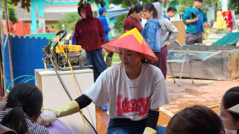 Ngay khi đặt chân tới nơi, các hoa hậu, á hậu nhanh chóng bắt tay vào công việc, cùng nhau dọn dẹp bùn đất, thu gom rác thải, vệ sinh khuôn viên sân trường, phòng học và cơ sở vật chất bị ảnh hưởng.