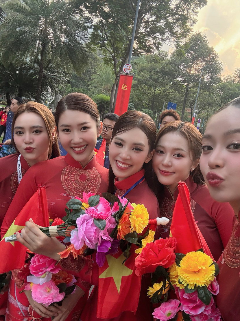 Một số hình ảnh của các Hoa hậu tại lễ diễu binh, diễu hành kỷ niệm Đại lễ vào sáng 30/4/2025: