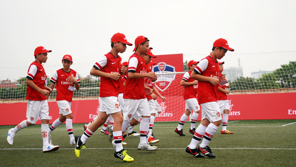 Các cầu thủ tí hon khởi động chờ nghênh chiến Pháo thủ