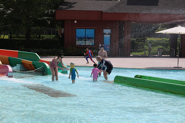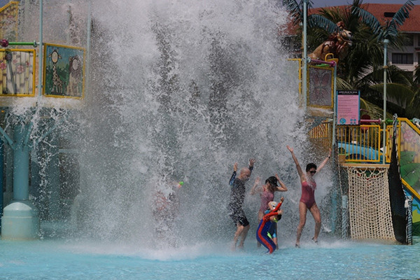 Trong khi đó, gia đình bộ đôi nhạc sĩ Huy Tuấn và Nguyễn Hải Phong chọn công viên nước ngọt trên đảo lớn nhất tại VinOasis để tận hưởng không gian thoải mái, sảng khoái tại đây.