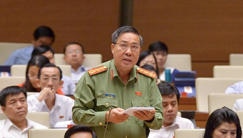 Giám đốc Công an tỉnh Ninh Thuận Phạm Huyền Ngọc phát biểu trước Quốc hội