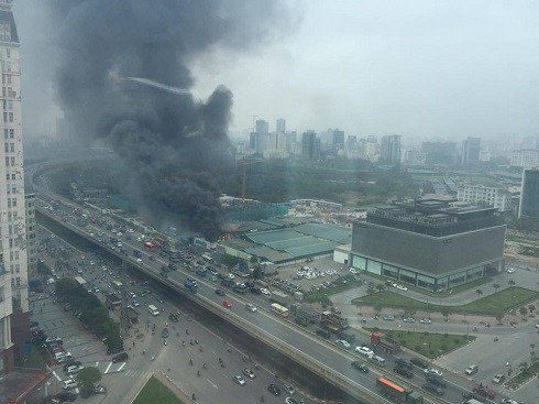 Vào thời điểm trên người dân phát hiện cột khói phát ra từ phía khu nhà lợp mái tôn tại Lô E1.2 đường Phạm Hùng đã tri hô người công nhân thoát nạn.