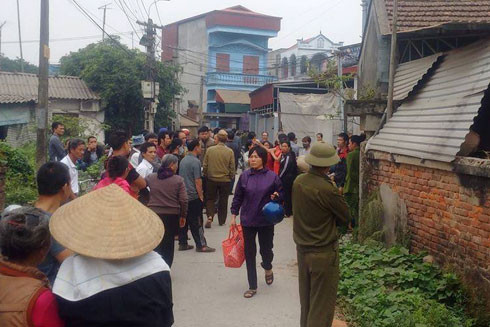 Người dân hiếu kì tập trung trước cổng căn nhà xảy ra sự việc.