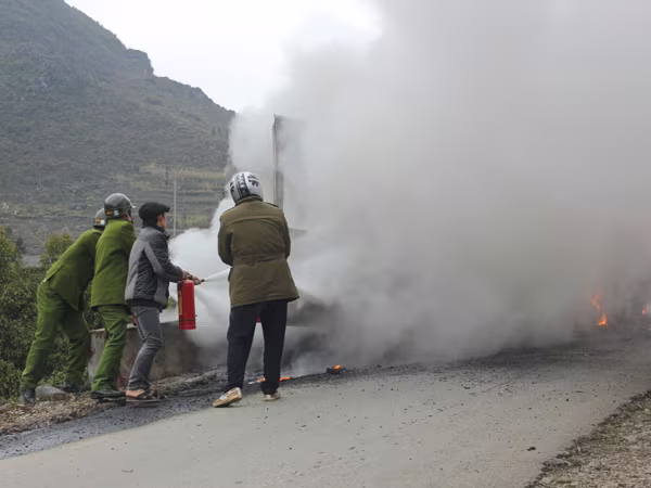 Trên xe lúc này chỉ có lái xe và một phụ xe nên không gây hỗn loạn. Ngay sau đó lực lượng chức năng huyện Mèo Vạc cũng có mặt, mang bình chữa cháy xách tay ra hỗ trợ dập lửa. Tuy nhiên lúc này ngọn lửa đã bùng phát quá lớn, địa điểm cháy lại ở khu vực lưng chừng núi, khan hiếm nước nên khó khăn cho việc dập lửa khiến chiếc xe ô tô bị thiêu rụi hoàn toàn. Hiện cơ quan cảnh sát điều tra công an huyện Mèo Vạc đang điều tra nguyên nhân vụ cháy.