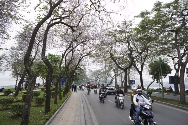 Hàng ban bên đường Cổ Ngư- Thanh Niên được trồng rất nhiều loài cây này nhưng do thổ nhưỡng không hợp nên chỉ còn một số cây sinh trưởng được