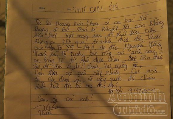 Lúc đó, phóng viên của An ninh Thủ đô cũng có mặt và được nghe chia sẻ của người mẹ có đứa con tự kỷ. Chị Thoa vừa kể vừa khóc: “Chị biết cháu bị tự kỷ từ năm cháu 2 tuổi rồi. Cả khu nhà chị ai cũng biết nên mỗi lần thấy cháu là họ giữ lại gọi cho mình. Nhưng lần này cô giúp việc không giữ được vì cháu rất khỏe. Đã nhiều lần cháu đi lạc rồi cô ạ! Và lần này là lần thứ 3 cháu đi xa như thế này. Hai lần trước gia đình đều tìm thấy cháu ở cơ quan công an, nên lần này cũng báo công an ngay. May quá!...”.