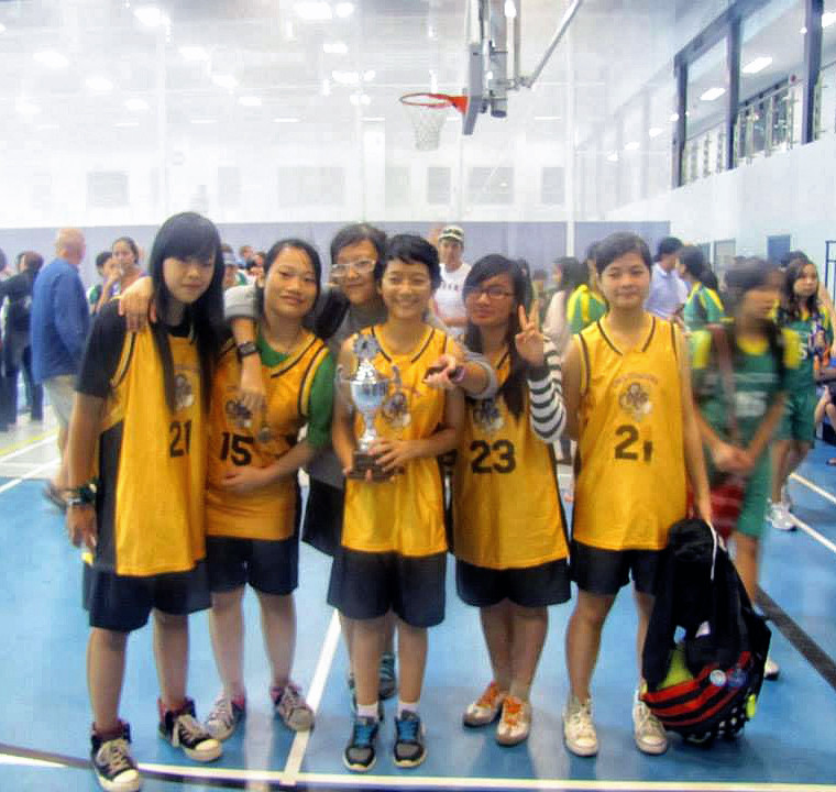 Đặng Hương Giang (thứ 2 từ phải qua) cùng đội bóng rổ giành chức vô địch