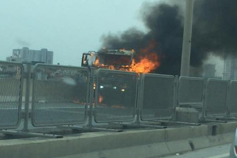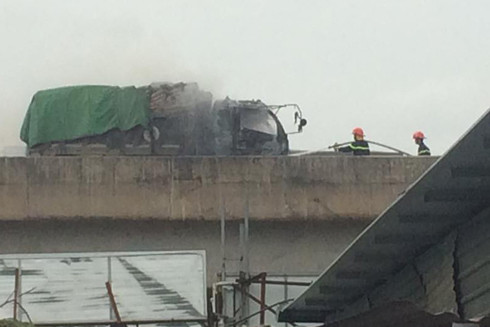 Theo thông tin ban đầu, chiếc xe tải lưu thông ở đường trên cao theo hướng Pháp Vân - Mỹ Đình khi đi đến gần khu vực nói trên thì bất ngờ bốc cháy dữ dội phần đầu xe.