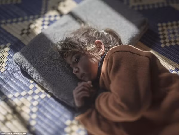 Trong hình là Esra, 11 tuổi, Esma, 8 tuổi và Sidra, 6 tuổi. Cả 3 đang ngủ với mẹ ở Majdal Anjar, Lebanon. Ba đứa trẻ không ngừng mơ về người cha của mình, ông đã mất tích hoàn toàn khi bị một nhóm người bắt cóc đi.