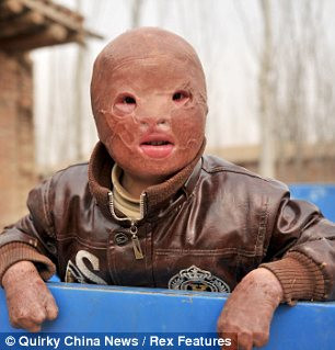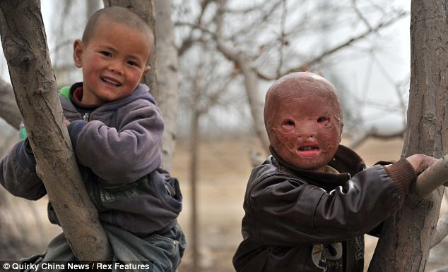 Một cậu bé Trung Quốc không có mặt do bị bỏng nặng trong một lần chơi dại bằng bật lửa. Lúc nào trông cậu cũng như đang đeo một chiếc mặt lạ. Đáng thương hơn là bố mẹ cậu quá nghèo, không có tiền để đưa cậu đi tái tạo khuân mặt.