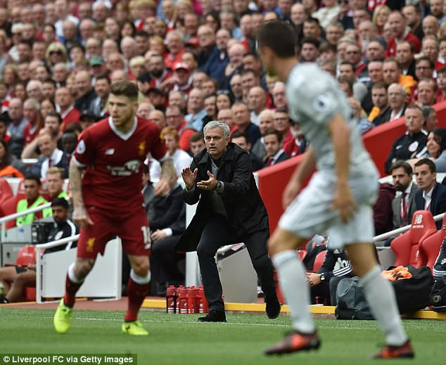HLV Mourinho trong trận hòa 0-0 giữa Liverpool và M.U cuối tuần qua