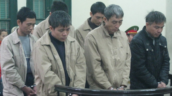 Cùng bị đưa ra xét xử về tội “Giết người”, theo khoản 2, Điều 93-BLHS, tại phiên tòa hôm qua (7-1) với Nguyễn Văn Mười còn có Nguyễn Văn Bản (SN 1973), Nguyễn Văn Hiển (SN 1966), Lưu Bá Hoàng (SN 1972), Nguyễn Văn Sơn và Trần Huy Cường (cùng SN 1985), tất cả đều trú ở xã Thanh Lâm, Mê Linh, Hà Nội. Nạn nhân trong vụ án là Nguyễn Văn Dũng (trú ở xã Liễn Sơn, Lập Thạch, Vĩnh Phúc) - đối tượng thực hiện vụ trộm chó ở địa bàn xã Thanh Lâm.